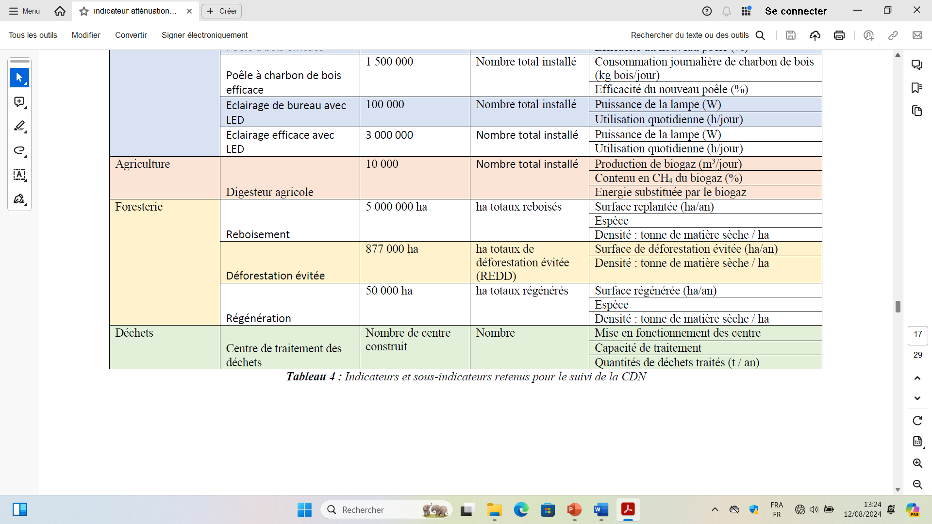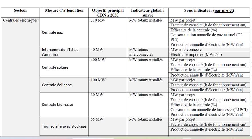 Indicateurs et sous-indicateurs retenus pour le suivi des mesures d’atténuation de la CDN